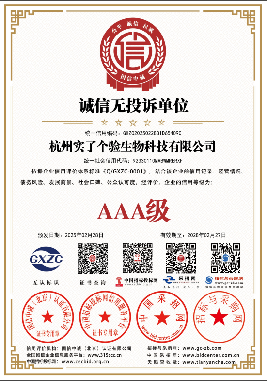 杭州實(shí)了個(gè)驗(yàn)生物科技有限公司